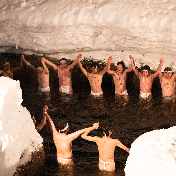 町内には小さな神社が多くあり、季節によって各地域、各集落の伝統にのっとったお祭り行事が開催されています。中でも、メディアにたびたび取り上げられるのが1月の極寒の最中におこなわれる通称「裸祭り」。3年連続で参加することでご利益があるそうですよ。